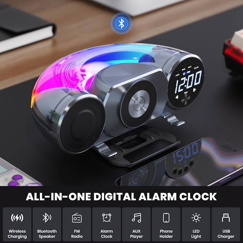 🎁 Gift Collection WD100 – 8-in-1 Wireless Charging Clock Speaker